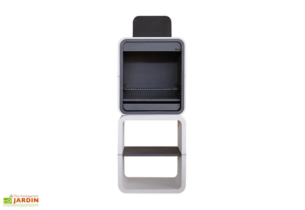 Ce barbecue design Blive est composé d’une structure en béton et d’une cheminée métallique. Il associe un look moderne à une construction extrêmement robuste, le béton utilisé étant fibré et hydrofuge, donc insensible à l’humidité et au gel. Le foyer est lui aussi conçu en métal traité anti-corrosion et est recouvert d’une peinture thermorésistante. Le tout se montrera donc très résistant sans pour autant nécessiter d’entretien particulier.