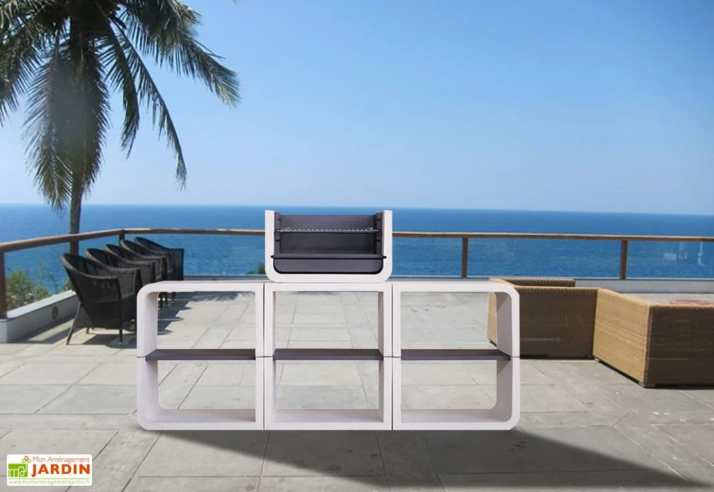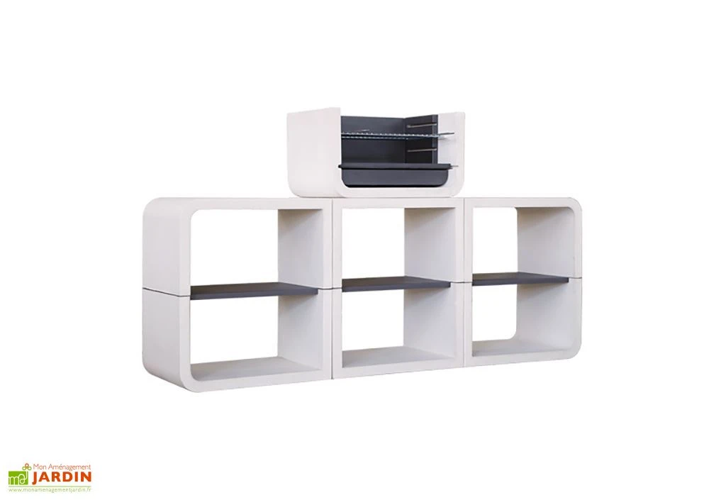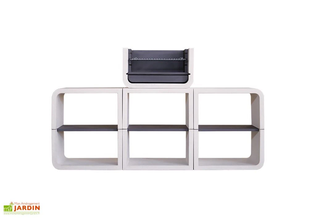 Ce barbecue de la marque Blive est doté d’un design moderne qui lui permettra de s’intégrer facilement dans bien des extérieurs, qu’il s’agisse d’un jardin ou d’une terrasse. Il s’agit d’un modèle composé de plusieurs modules en béton fibré hydrofuge, un matériau extrêmement robuste qui résistera à l’humidité comme au gel ou autres intempéries, le tout sans exiger le moindre entretien. Le foyer est pour sa part équipé de plaques métalliques traitées contre la corrosion et recouvertes de peinture thermorésistante, ce qui lui garantit une bonne tolérance aux températures très élevées.