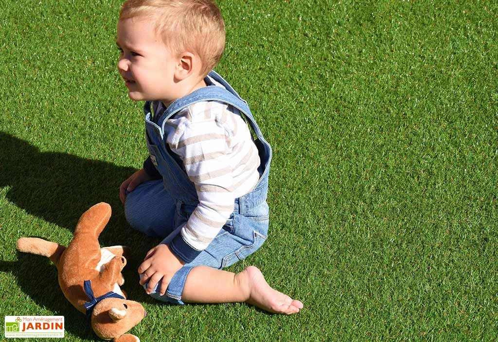 Ce gazon artificielle a été pensé pour être facile à nettoyer. Un système de drainage permet d’évacuer facilement l’eau. Il est également résistant aux UV et à la circulation puisque ses fibres se relèvent après votre passage. Vous pouvez ainsi utiliser ce faux gazon sur la terrasse ou le balcon par exemple.