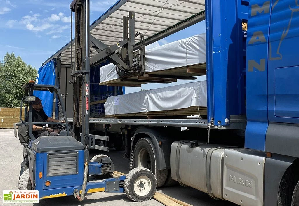 Ce kit est livré sous forme de colis filmés et cerclés, déchargés directement devant votre domicile.