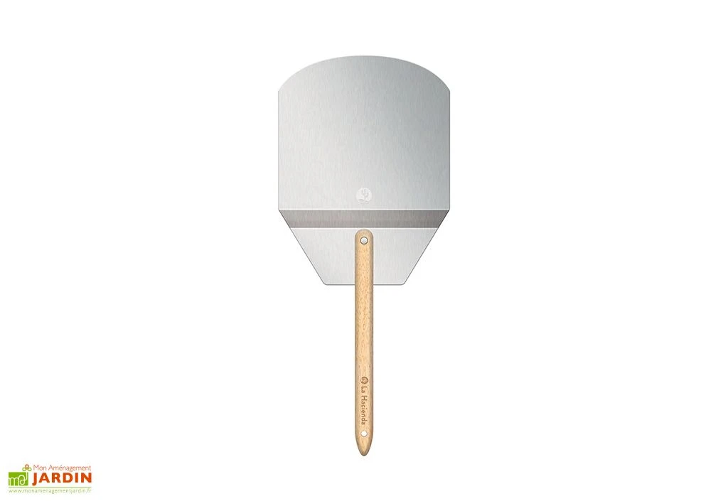 La pelle à pizza La Hacienda mesure 65 cm de longueur et 23 cm de largeur. Elle comprend un manche en bois d’hévéa et une planche en acier inoxydable. Elle vous permet de sortir vos pizzas du four sans risquer de vous brûler. C’est l’accessoire incontournable pour vos fours à pizza.