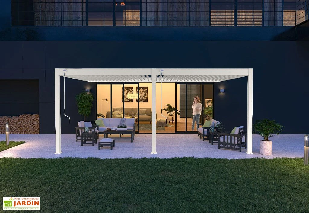 Résistante aux agressions extérieures, cette tonnelle l’est également face aux conditions climatiques difficiles. En effet, sa structure résistera à des vents jusqu’à 100 km/h et à une charge de neige jusqu’à 50 kg/m². Lors de fortes chutes de neige, pensez tout de même à laisser les lames ouvertes afin d’éviter le risque de surcharge.