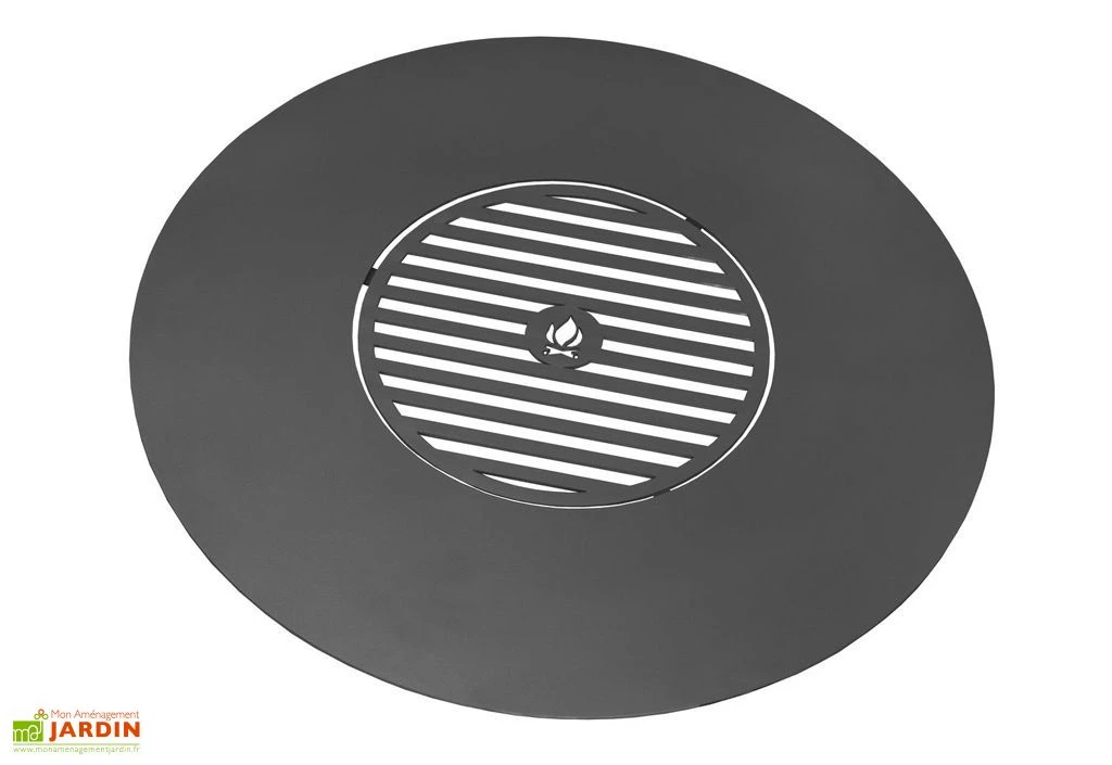 La plaque en acier de 3 mm a été fabriquée à la main et présente une grande résistance face aux températures élevées. La plaque présente une grille de 40 cm de diamètre et convient aux braséros de 80 cm de diamètre.